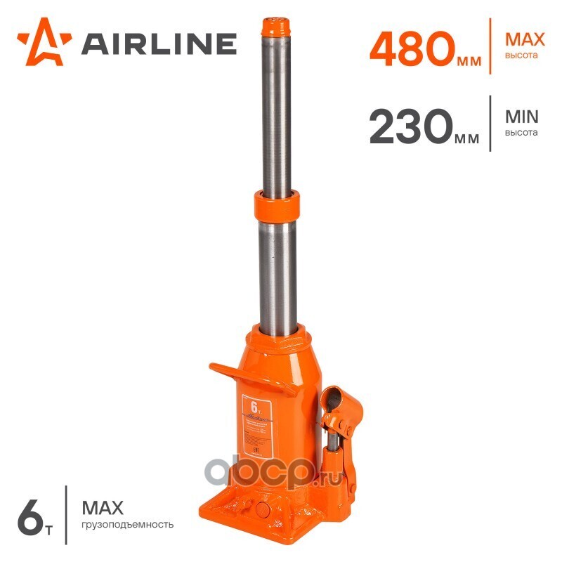 AIRLINE Домкрат телескопич. 6т 230-480мм, сумка